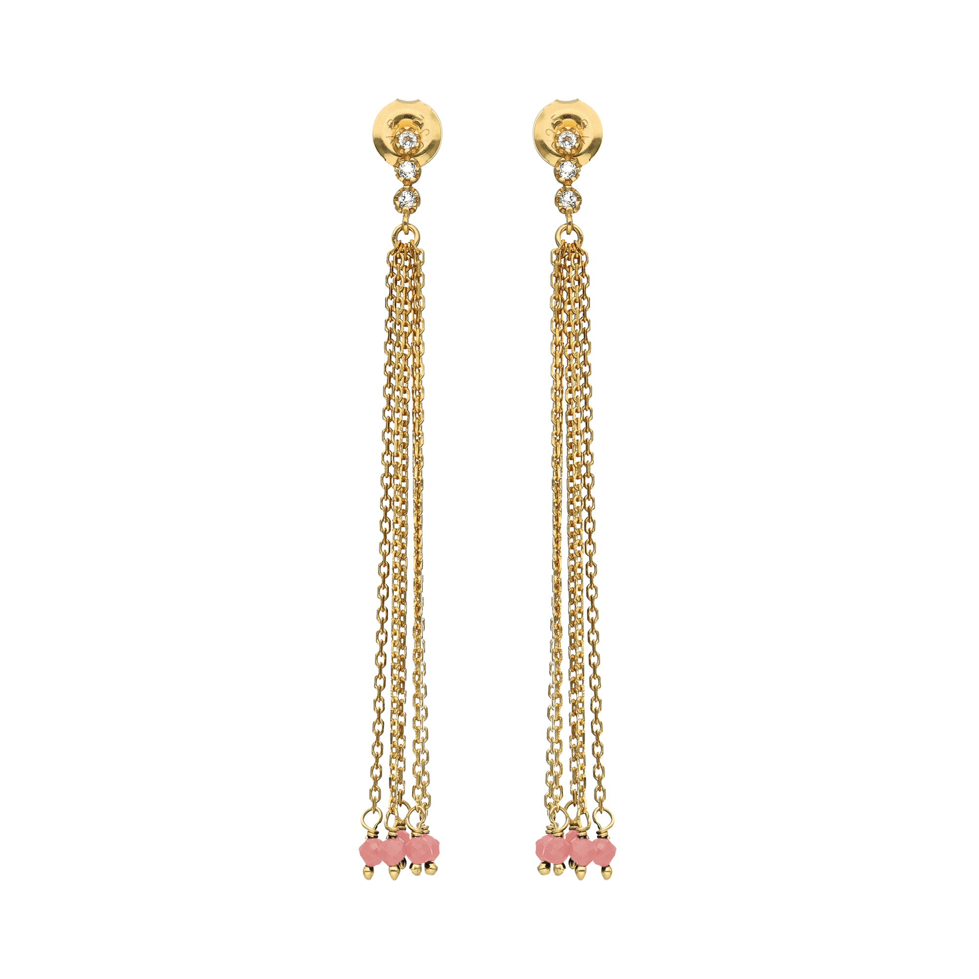 Boucles d oreilles argent dorée perle naturelle rhodonite fraise