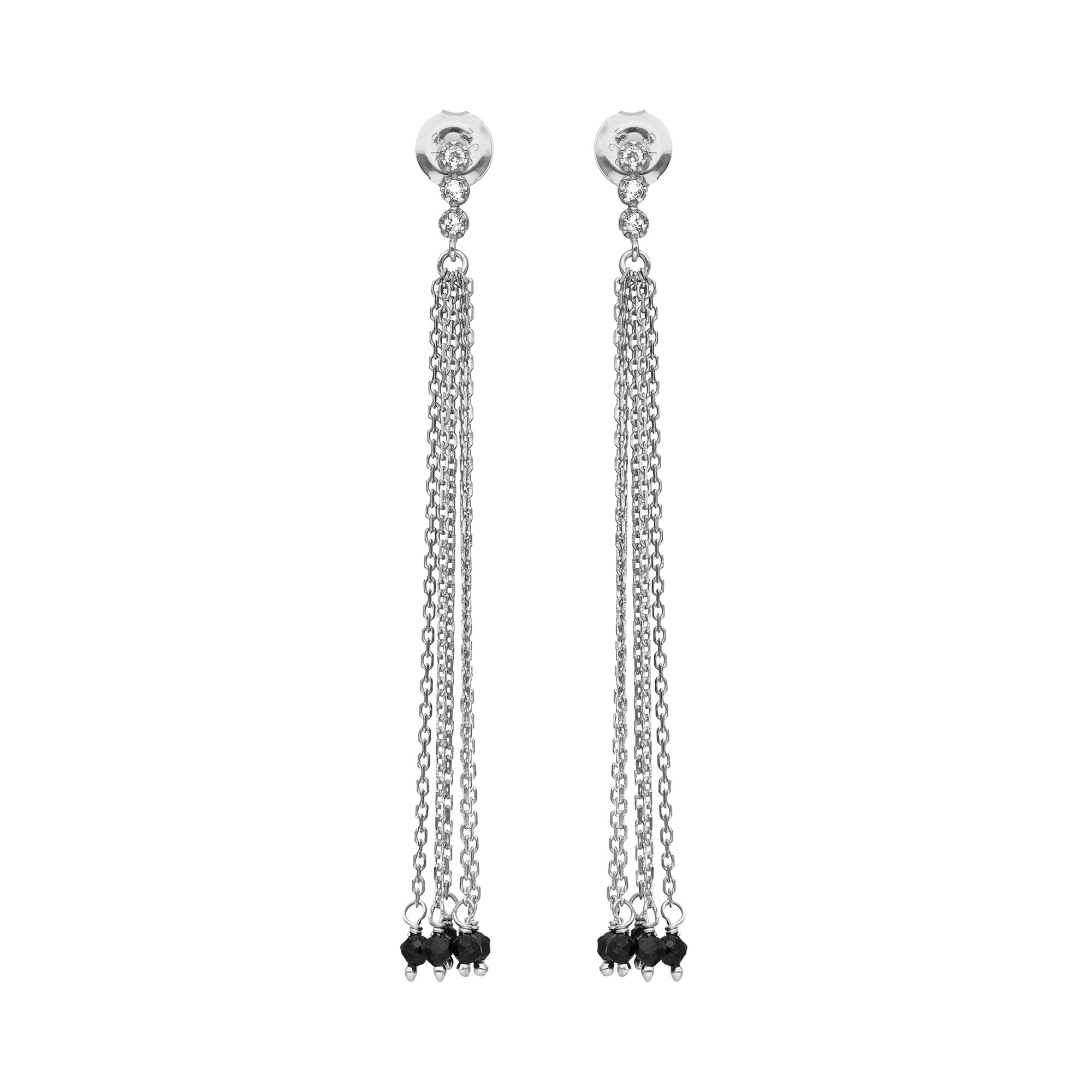 Boucles d oreilles argent rhodié perle naturelle spinelle noire