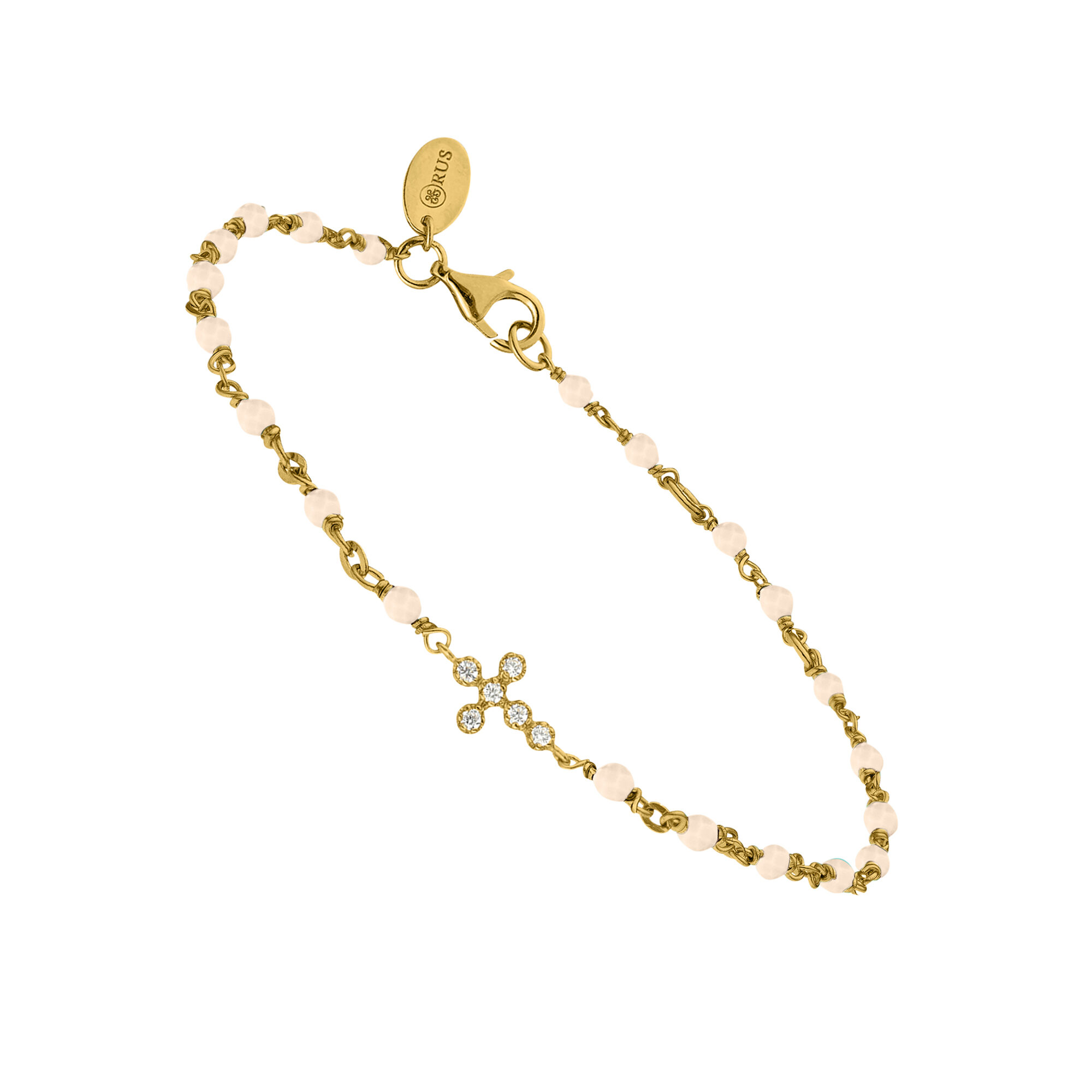 Bracelet argent doré croix zirconium blanc et pierres opale rose : un bijou d’exception