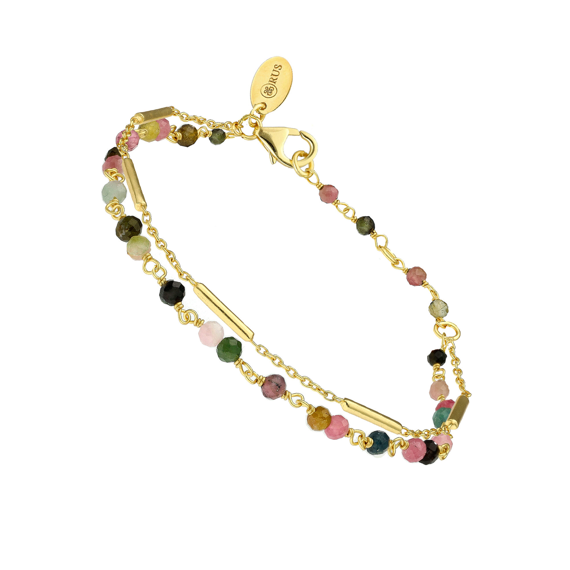 Bracelet argent doré doubles chaines barrettes pierre multi-tourmaline