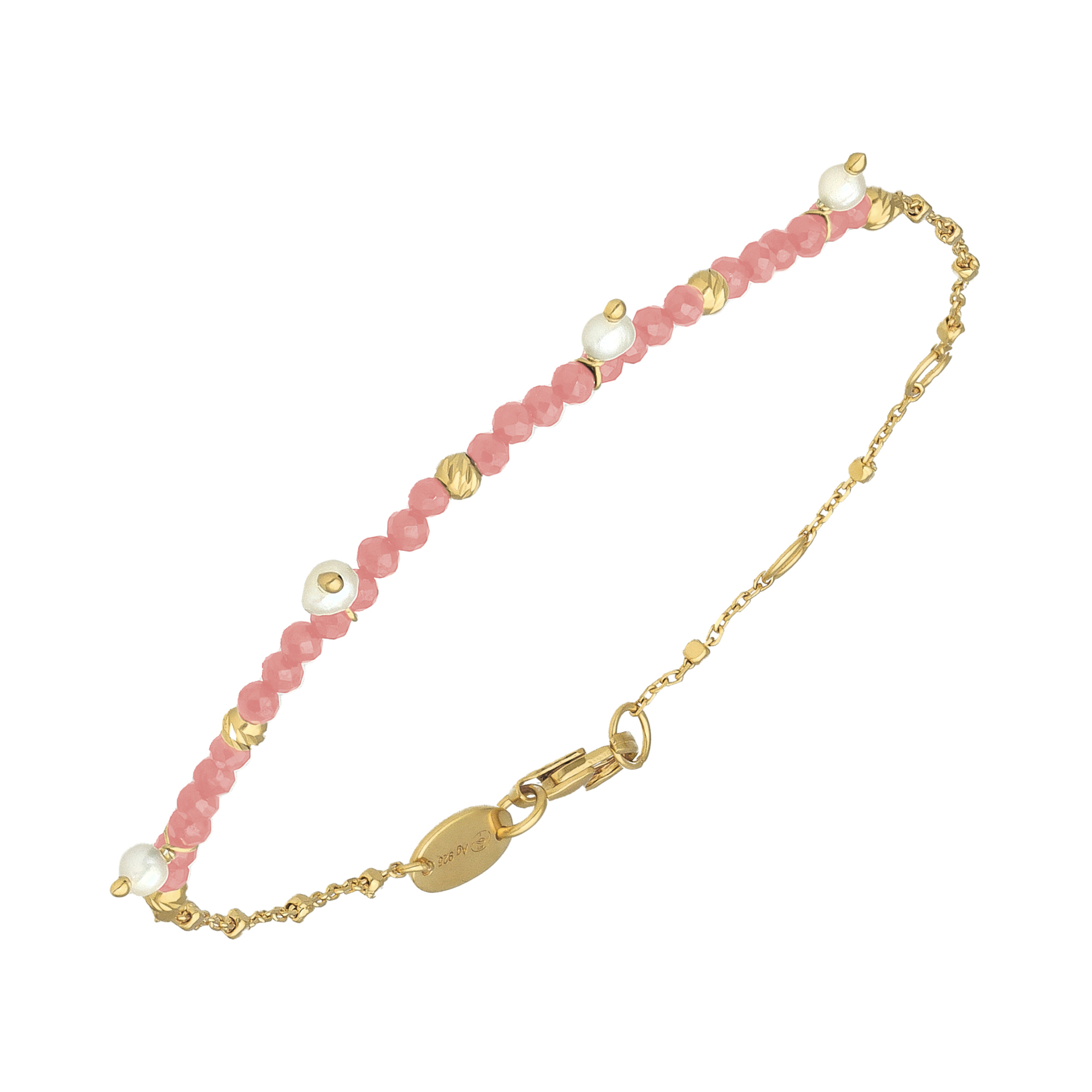 Bracelet argent doré pampille perle naturelle et rhodonite fraise