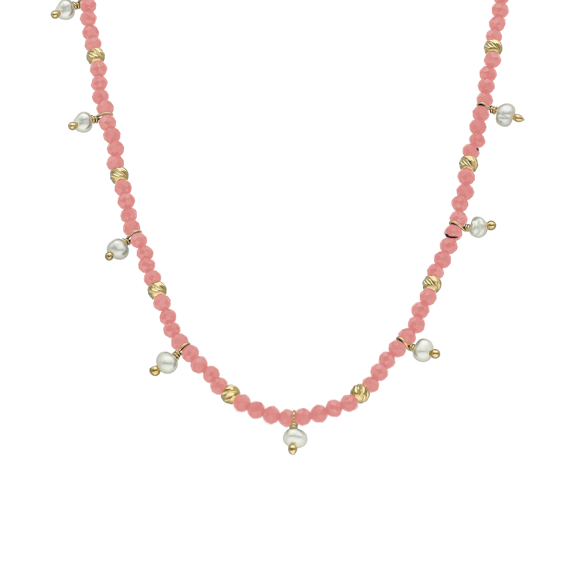Collier argent doré pampille perle naturelle et rhodonite fraise