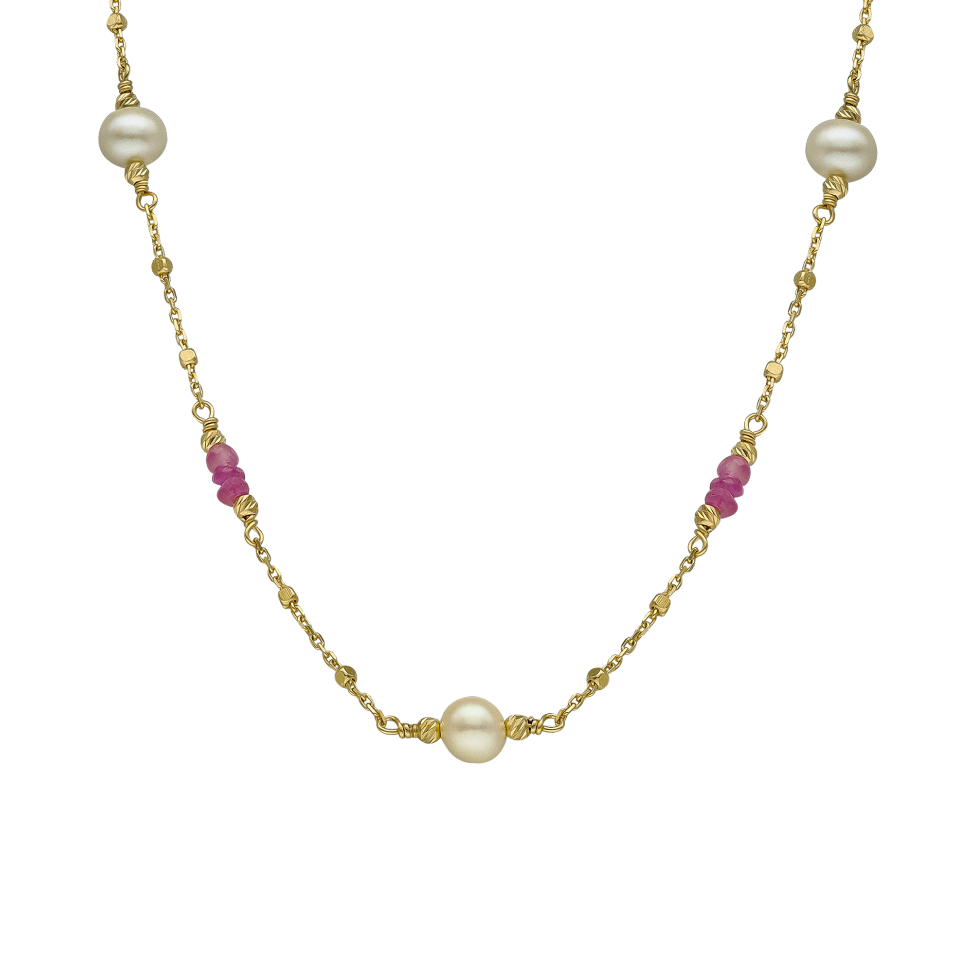 Collier argent doré rubis et perle naturelle blanche